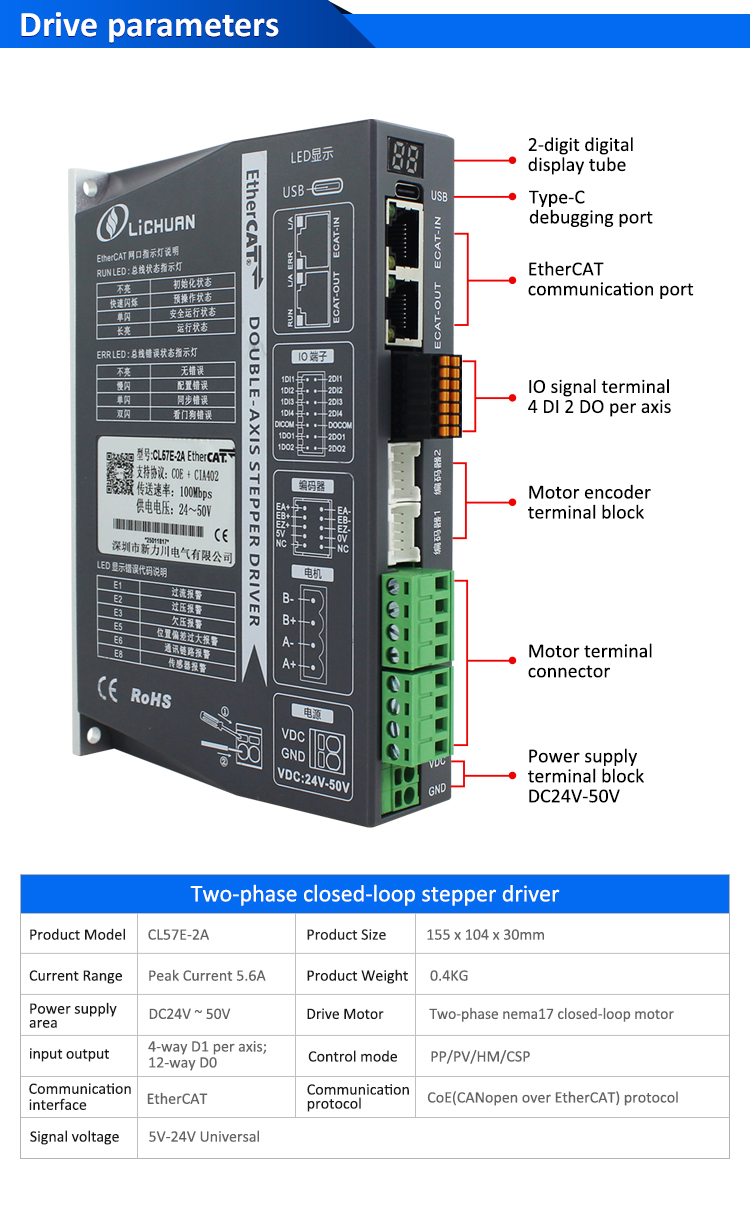 EtherCAT 2Phase Nema24 2-Axis DC Closed Loop Stepper Motor Drivers Kit