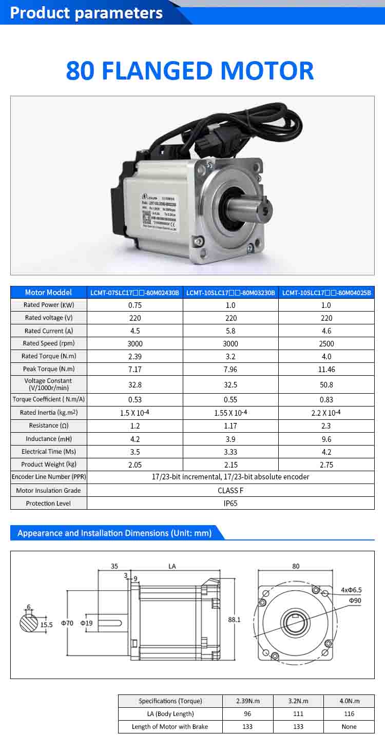 | மோட்டார் மாடல் | LCMT-07SLC17-80M02430B | LCMT-10SLC17-80M03230B | LCMT-10SLC17-80M04025B |