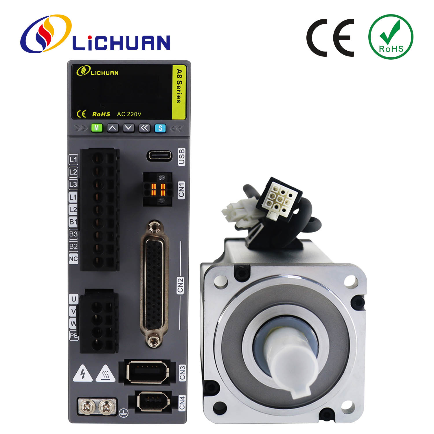 பல்ஸ்/RS485 50W/100W 2500/3000RPM A8 உயர் துல்லியம் STO ABZ AC சர்வோ மோட்டார் டிரைவர்கள் கிட்